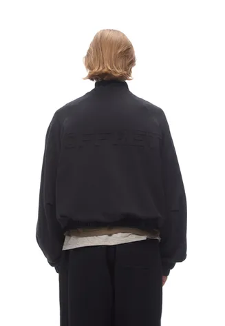 Бомбер на молнии из итальянского футера. Прямой силуэт с резинкой по низу и воротником-стойкой. Рукава реглан обеспечивают свободу движения, а внутренняя подкладка из хлопка делает изделие комфортным в носке. На спинке — объемная вышивка «OFFRET».