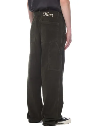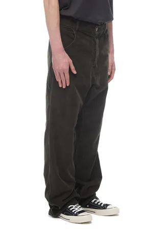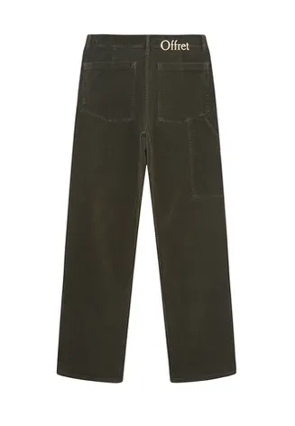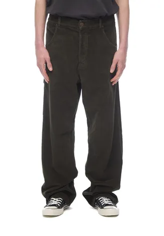 Брюки из хлопкового вельвета, произведенного в Испании. Relaxed fit, средняя посадка, прямой крой. Пояс со шлевками, застежка на металлические болты. Два боковых кармана, два задних накладных кармана, один накладной карман сбоку — элемент, вдохновленный брюками Carpenter.