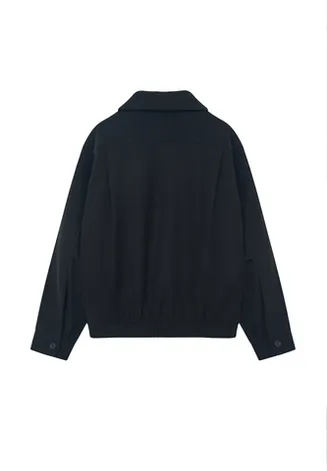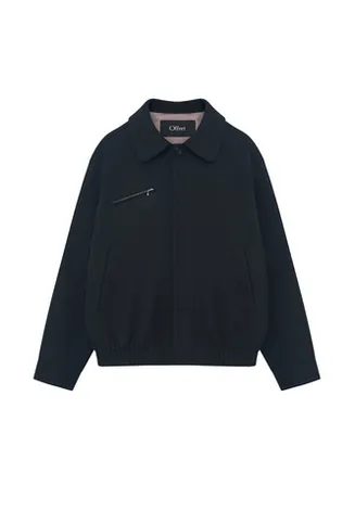 Куртка-бомбер из шерстяной ткани. Воротник с закругленными углами, манжеты на пуговицах, низ изделия собран на эластичной резинке. Врезной карман на молнии, как на рабочих куртках начала 20 века. Два внутренних кармана на молнии.