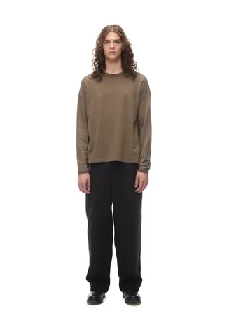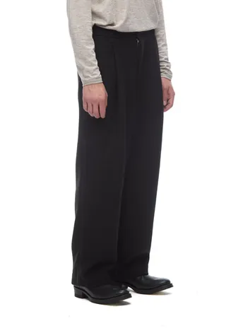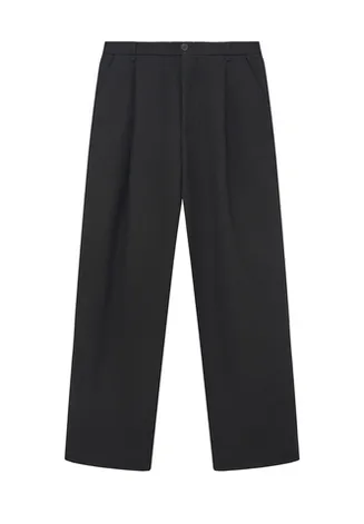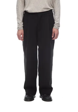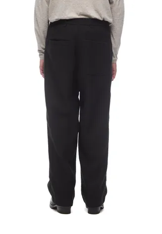 Брюки свободного кроя из плотного шерстяного полотна. Складки на передней стороне создают дополнительный объем в верхней части. Классический пояс со шлевками, застежка на молнию и пуговицу. Боковые прорезные карманы, Силуэт — свободный, слегка зауженный к низу.