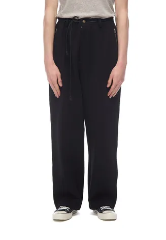 Брюки прямого кроя из футера. Эластичный пояс с застежкой на молнию и кнопку. Спереди два боковых кармана на молнии. Накладной и прорезной карманы сзади. Ткань держит форму, а силуэт остается универсальным для разных сочетаний.