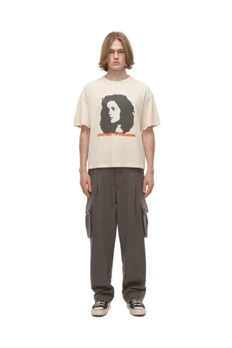 Крой свободный, расслабленный, слегка расширенный и укороченный, гендерно универсален. Особое внимание уделено обработке горловины и низа рукавов — срезы аккуратно окантованы, скрывая припуски и обеспечивая комфорт при носке.