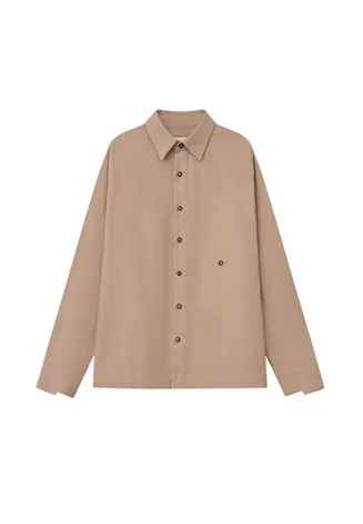 Фланелевая рубашка прямого кроя из плотного хлопка. Двусторонняя ворсовая поверхность придает мягкость и комфорт, сохраняя прочность. Конструкция без боковых швов создает цельный силуэт. Реглан объединен с кокеткой и манжетами в единую деталь, манжеты регулируются пуговицами из рога. На спинке — хлястик с двумя вариантами посадки, внутри скрытый карман с внешней застежкой.