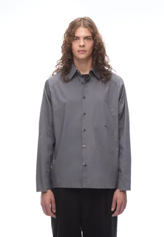 Рубашка с длинными рукавами реглан. Манжеты регулируются пуговицами. Конструктивная особенность: верхняя часть рукавов, кокетка и манжеты объединены в единую деталь, при этом отсутствуют боковые швы. Это делает силуэт цельным и удобным в носке.