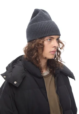 Вязаная шапка-бини из мериносовой шерсти. Мягкая и эластичная фактура обеспечивает комфортную посадку и сохранение формы. Двойной отворот добавляет объем и усиливает теплоизоляцию. Универсальная модель, которая сочетается как с верхней одеждой классического кроя, так и с повседневными образами. Цвет — темно-серый.